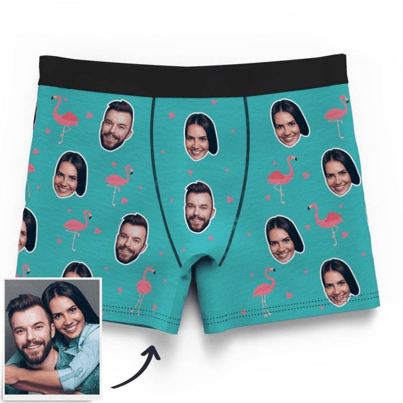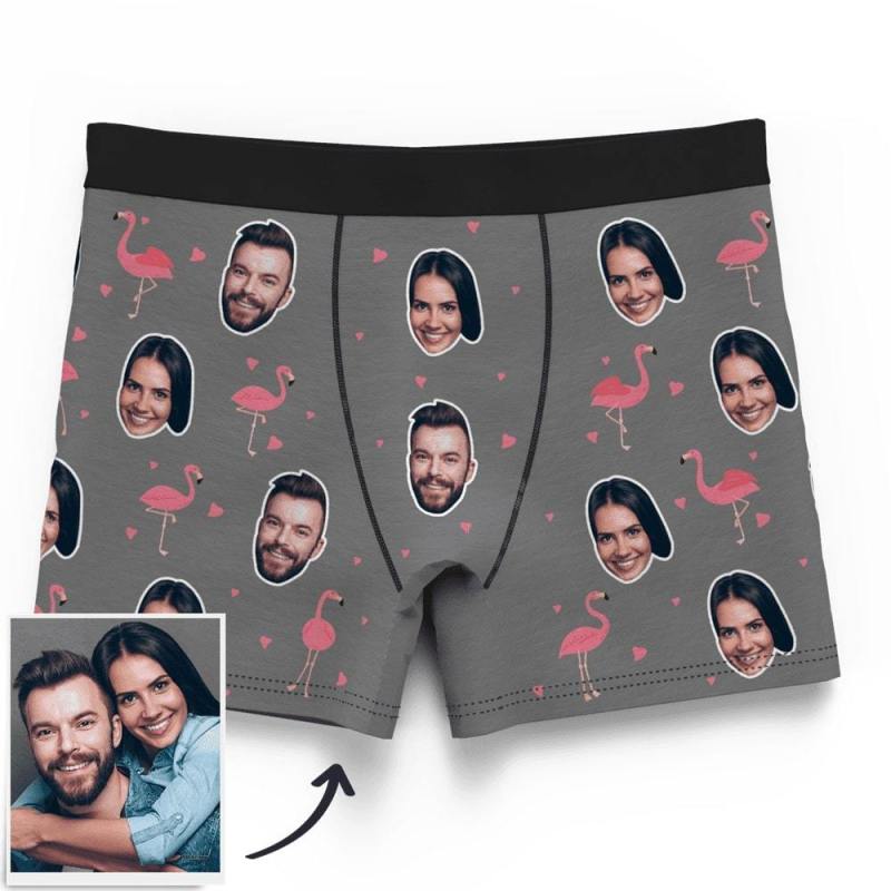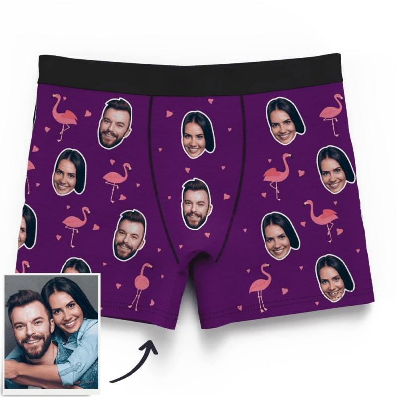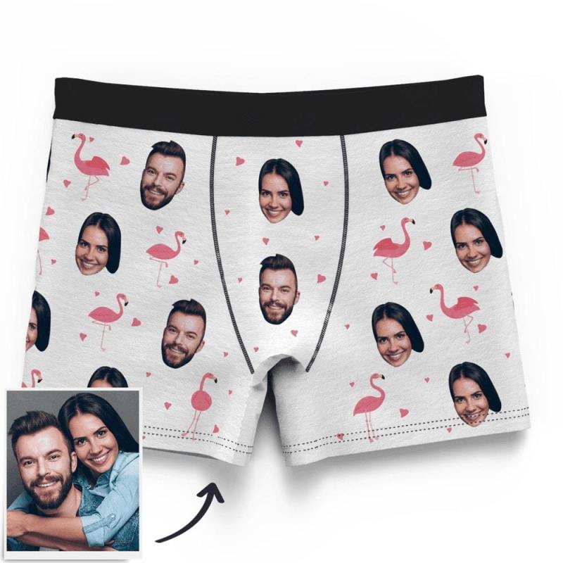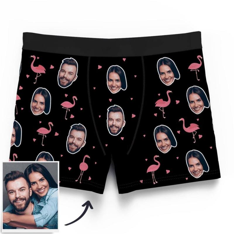 Couple Men's Custom Flamingo And Face On Boxer Shorts