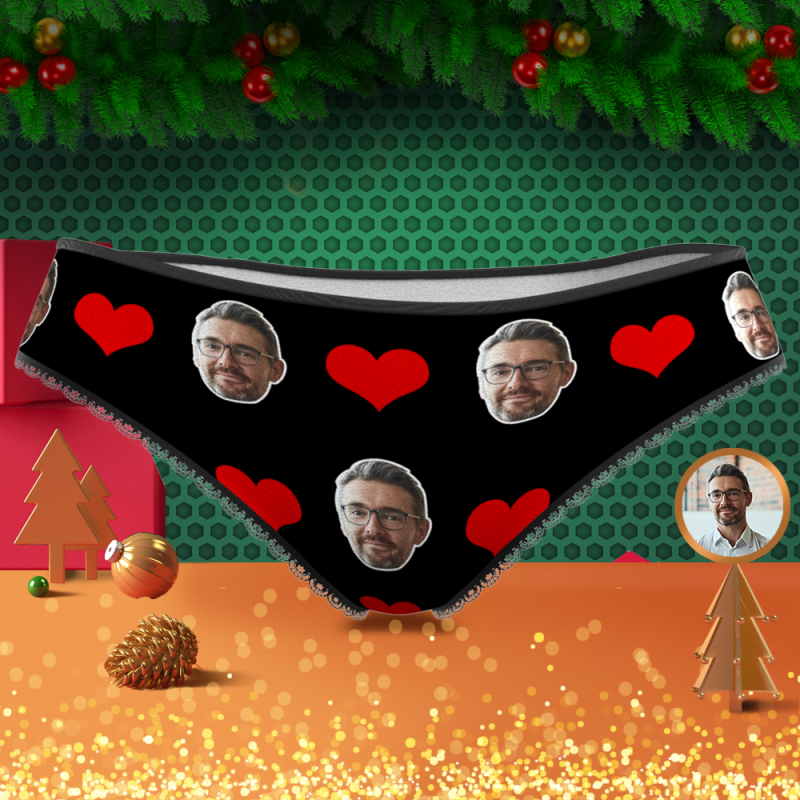 Couple Women's Custom Face Heart Panties Christmas Gifts