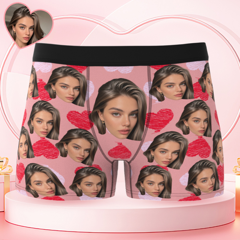 Custom Big Face Boxer Shorts Colorful Waistband Boxer Briefs Red and Pink Hearts Gifts For Him