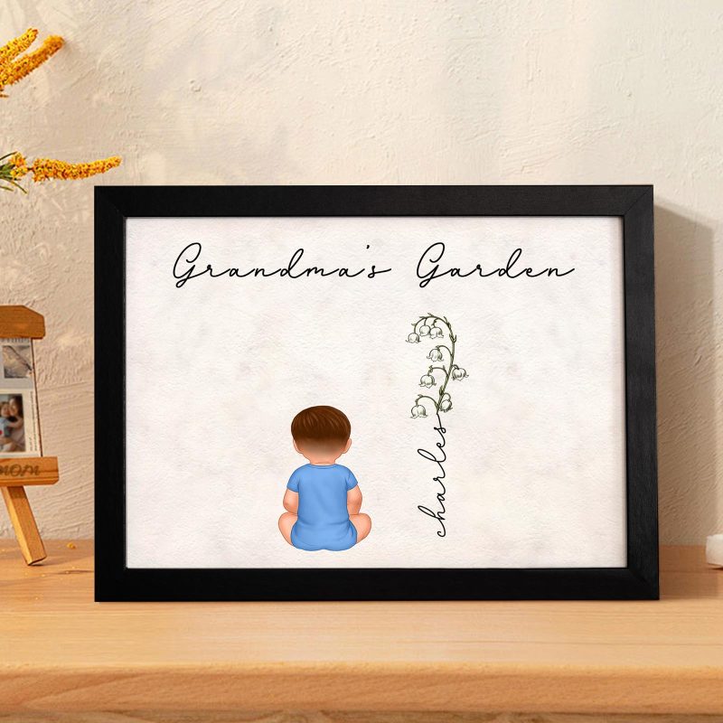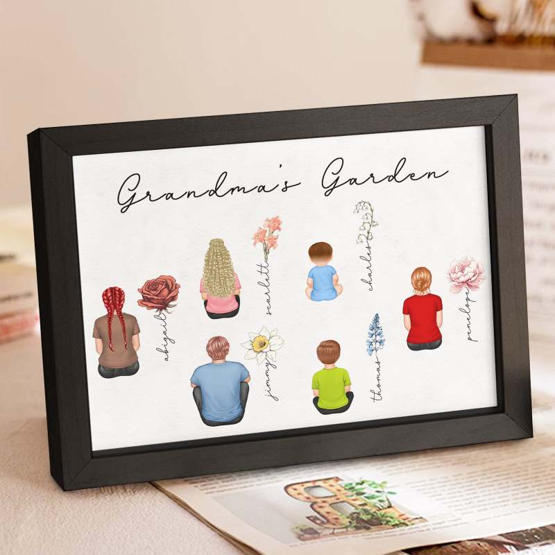 Custom Birth Month Flowers Garden With Grandkids Names Personalized Wooden Photo Frame Mother's Day Gift