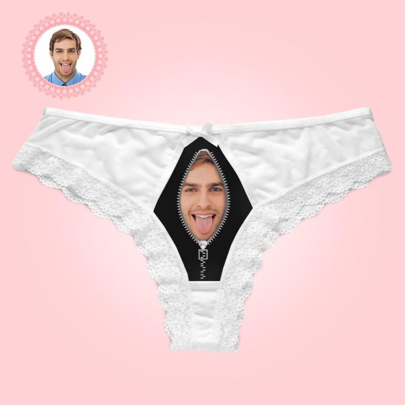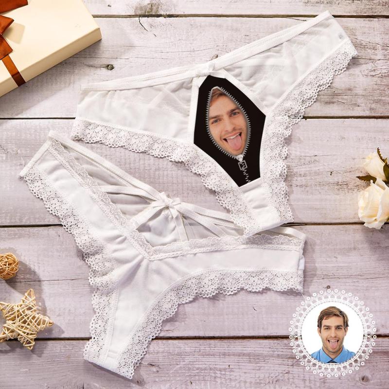 Custom Lace pPanties Sexy White Lace Thong Funny Gift with Boyfriend Face