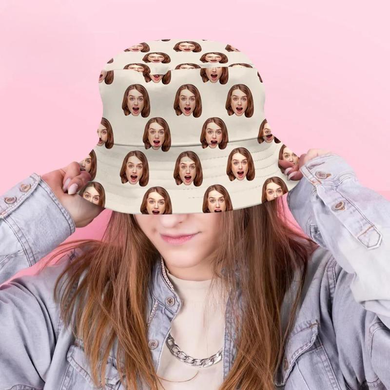 Custom Bucket Hat Unisex Face Bucket Hat Personalize Wide Brim Outdoor Summer Cap Hiking Beach Sports Hats Gift for Lover