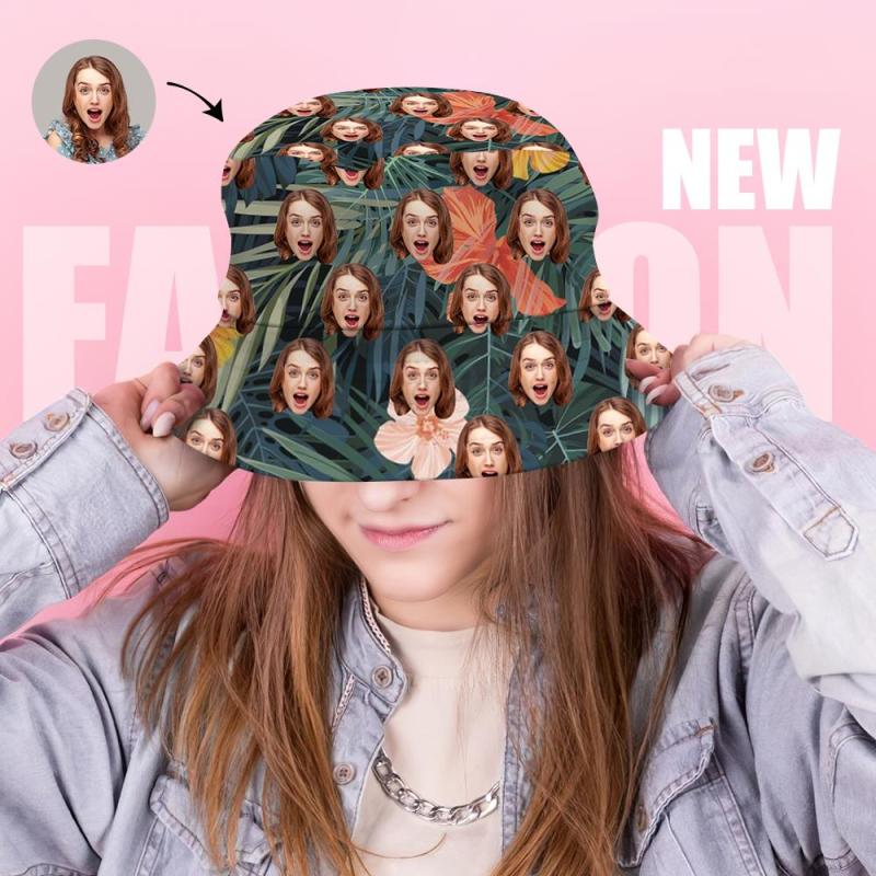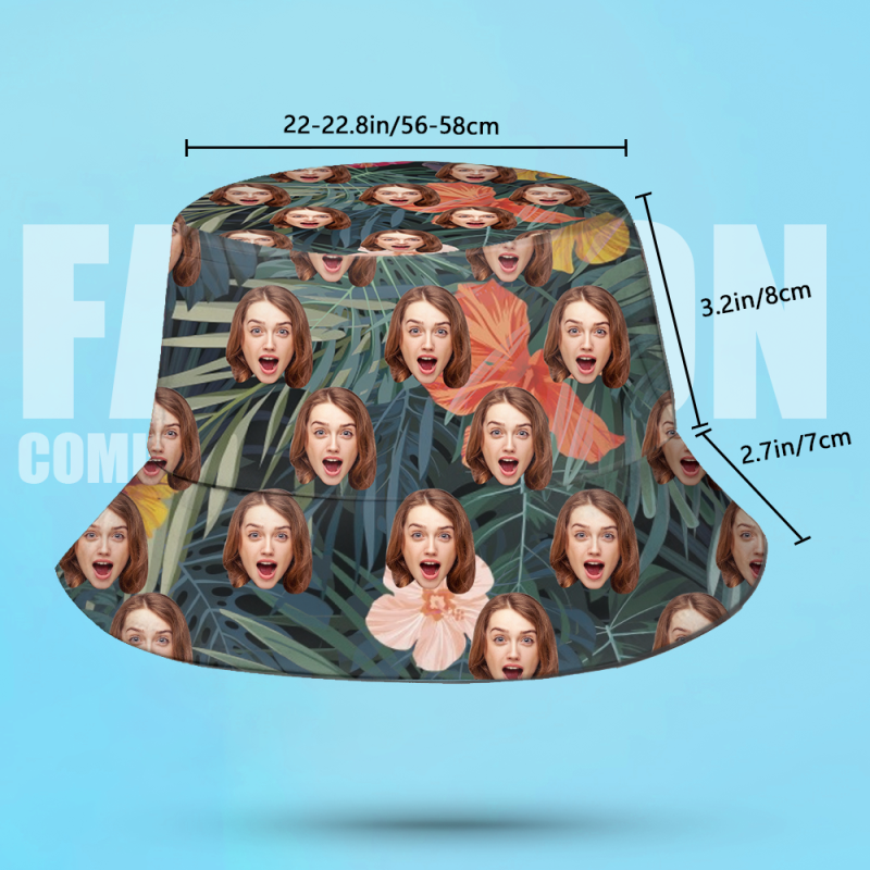 Custom Bucket Hat Unisex Face Bucket Hat Personalize Wide Brim Outdoor Summer Cap Hiking Beach Sports Hats Hawaiian Style Gift for Lover