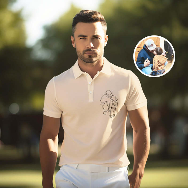 Father's Day Gifts Custom Embroidered Dad Portrait Polo Shirt, Papa Embroidered Polo Shirt From Photo, Gift For Dad