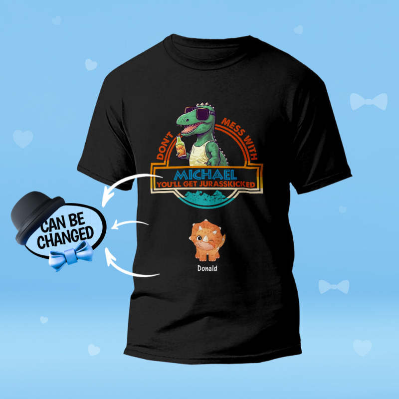 Custom Engraved T-Shirt Don't Mess With Papasaurus Best Gifts for Dad