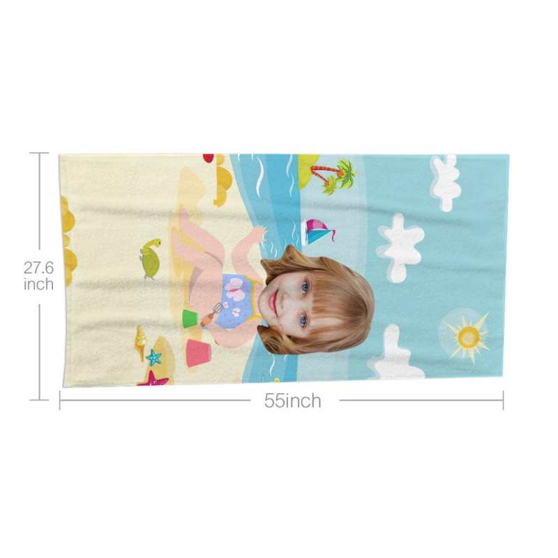 Custom Face Beach Towel Personalized Playful Girl Beach Towel Funny Gift for Summer