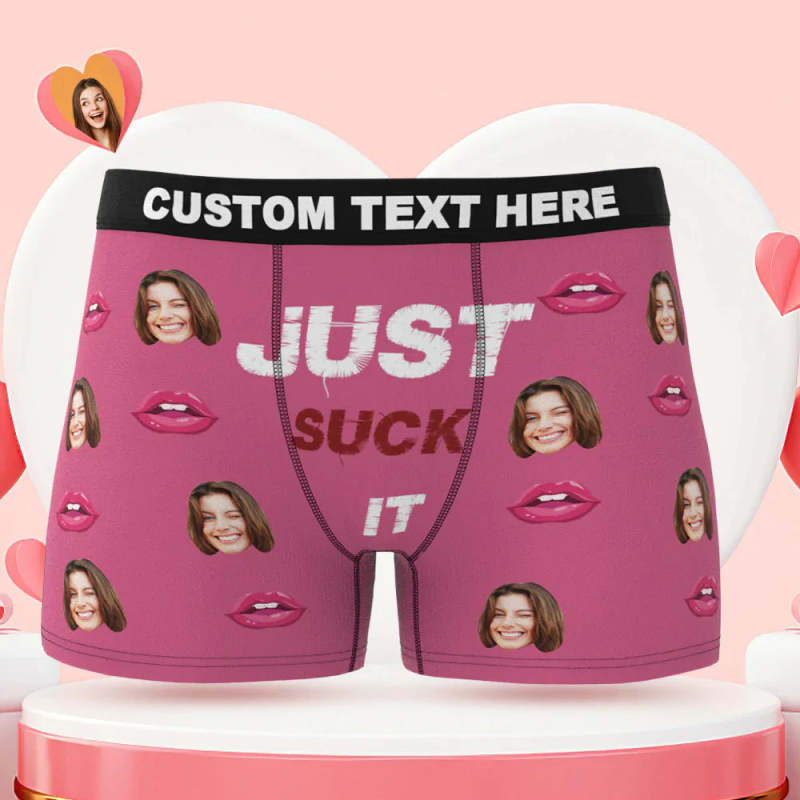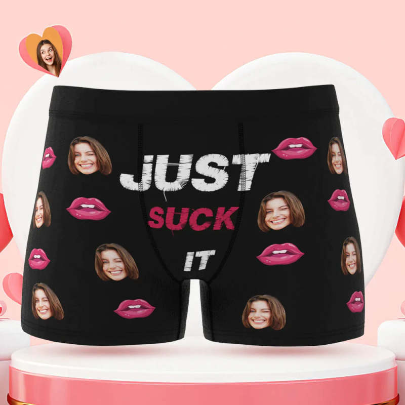 Custom Face Boxer Briefs Just Suck It Personalised Naughty Valentine's Day Gift for Him