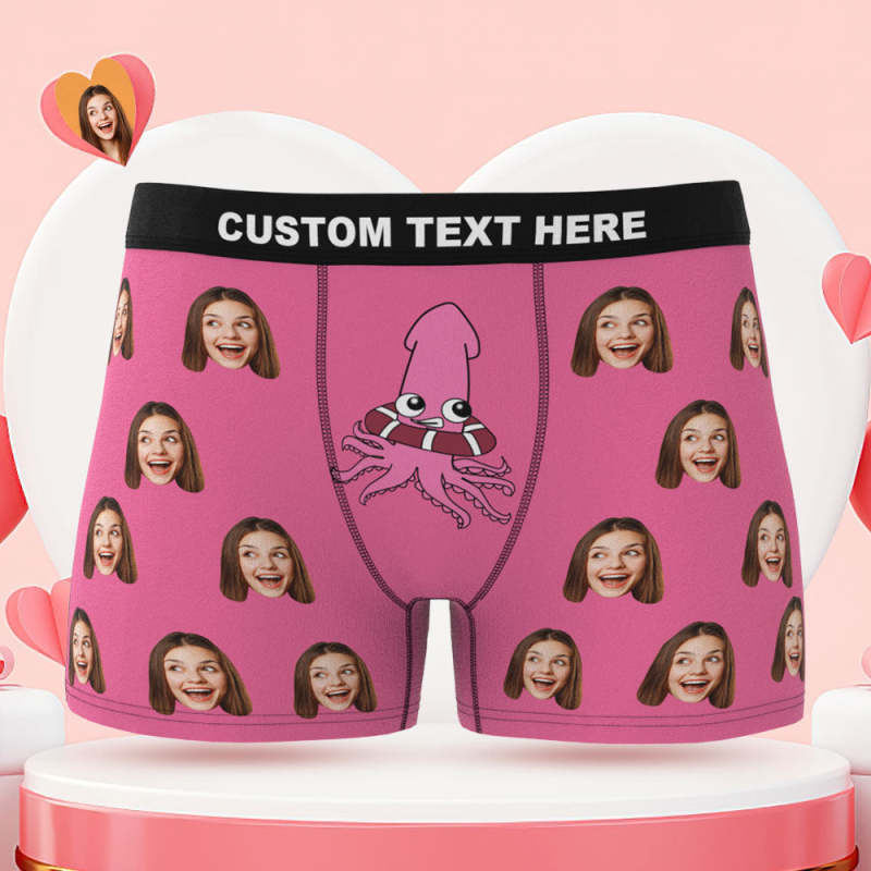 Custom Face Boxer Briefs Naughty Octopus Personalised Funny Valentine's Day Gift for Him