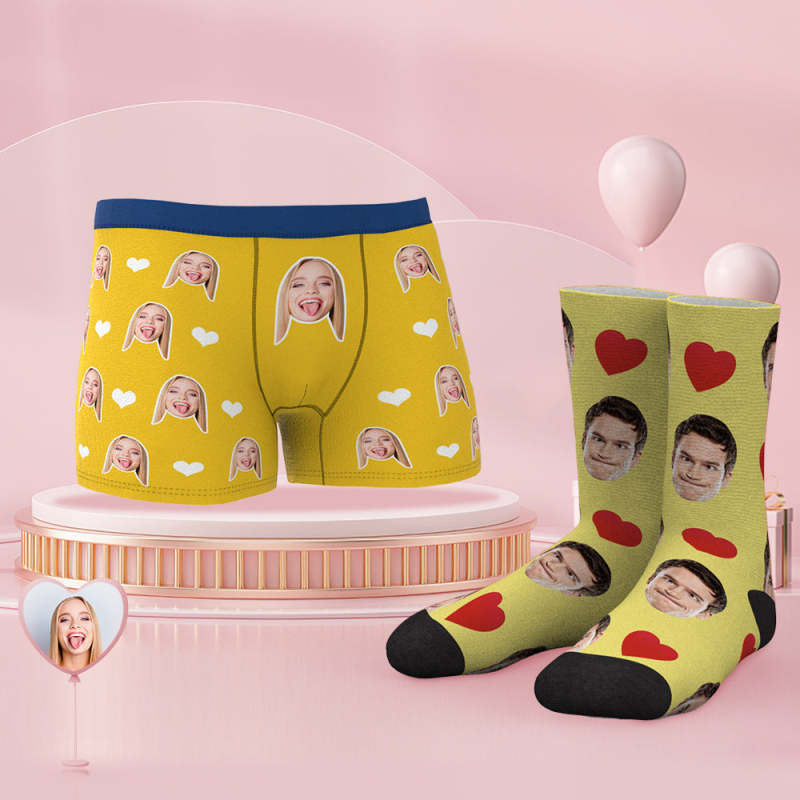 Custom Face Boxer Shorts And Socks Set Best Couple's Gift