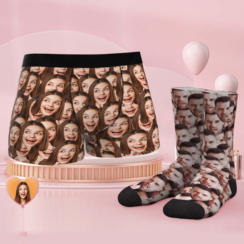 Custom Face Boxer Shorts And Socks Set Face Mash