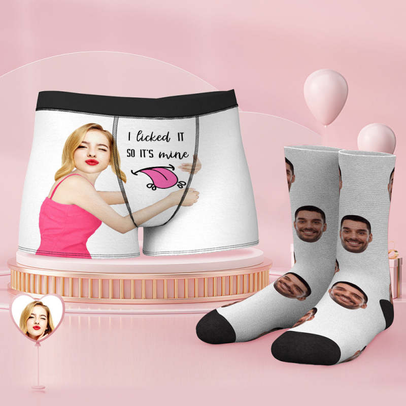 Custom Face Boxer Shorts And Socks Set I Licked It So It's Mine