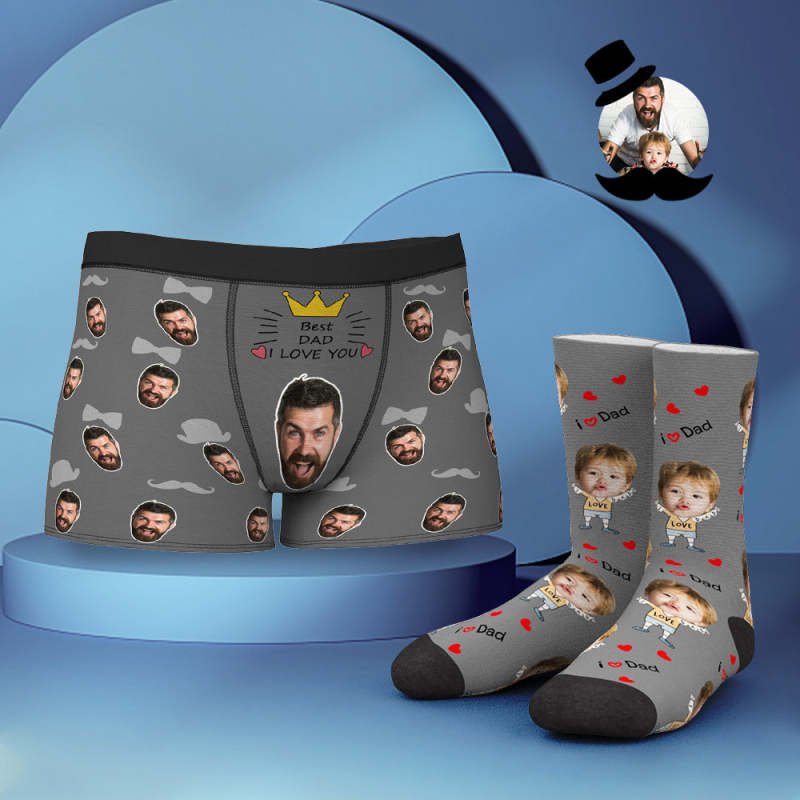 Custom Face Boxer Shorts And Socks Set I LOVE DAD