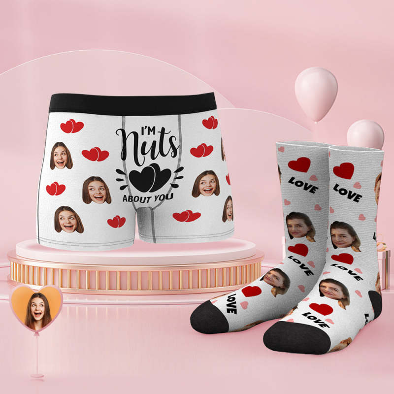 Custom Face Boxer Shorts And Socks Set I'm Nuts About You