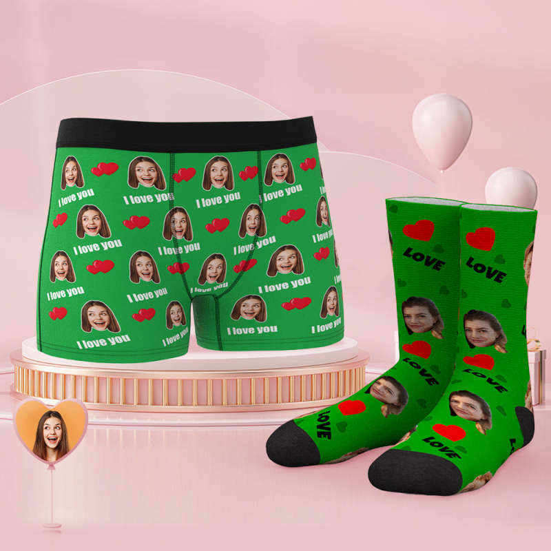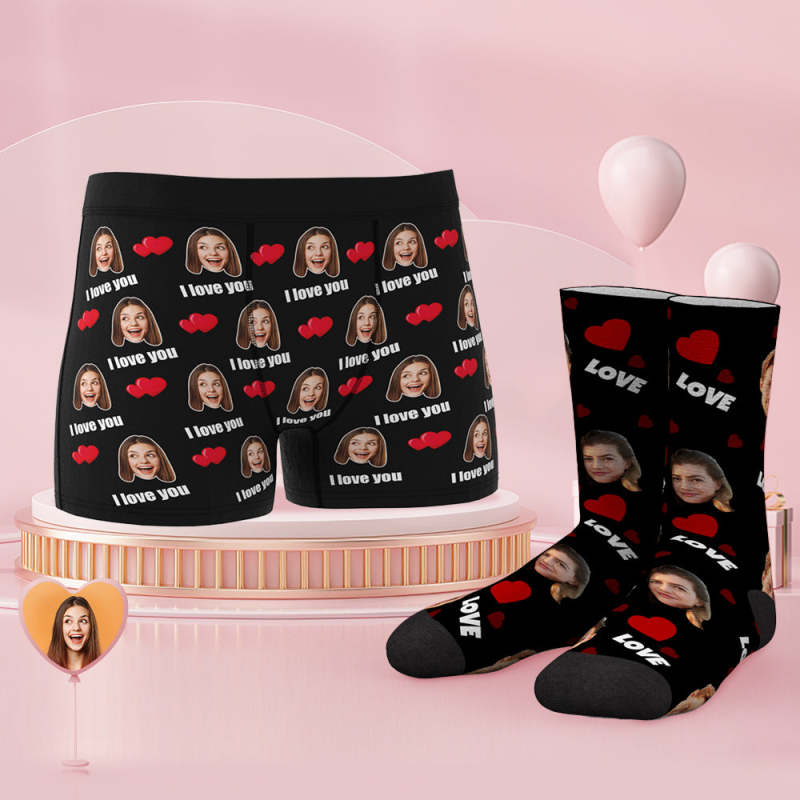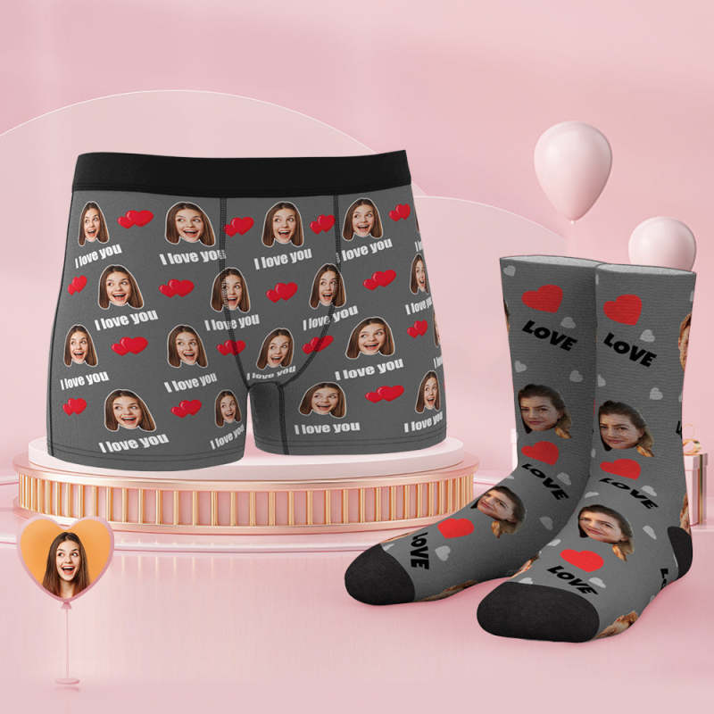 Custom Face Boxer Shorts And Socks Set Love