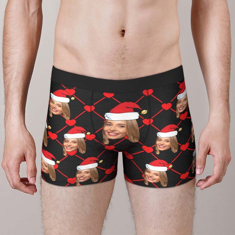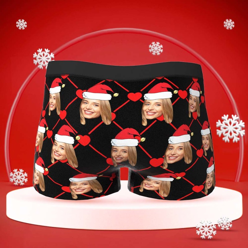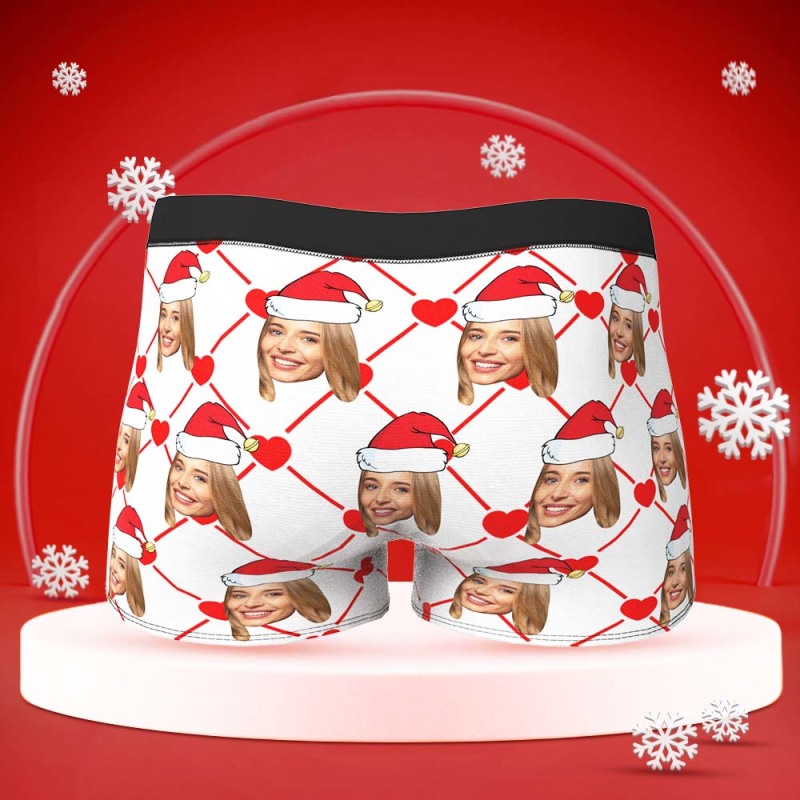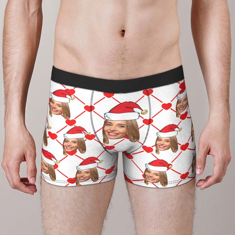 Custom Face Boxer with Girlfriend Picture Personalised Christmas Hat Pattern Men's Shorts
