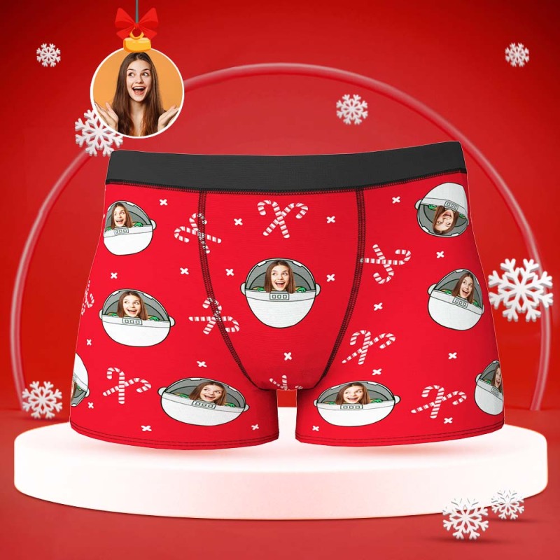 Custom Face Boxers Briefs Personalised Men's Shorts With Photo Christmas Gifts Red