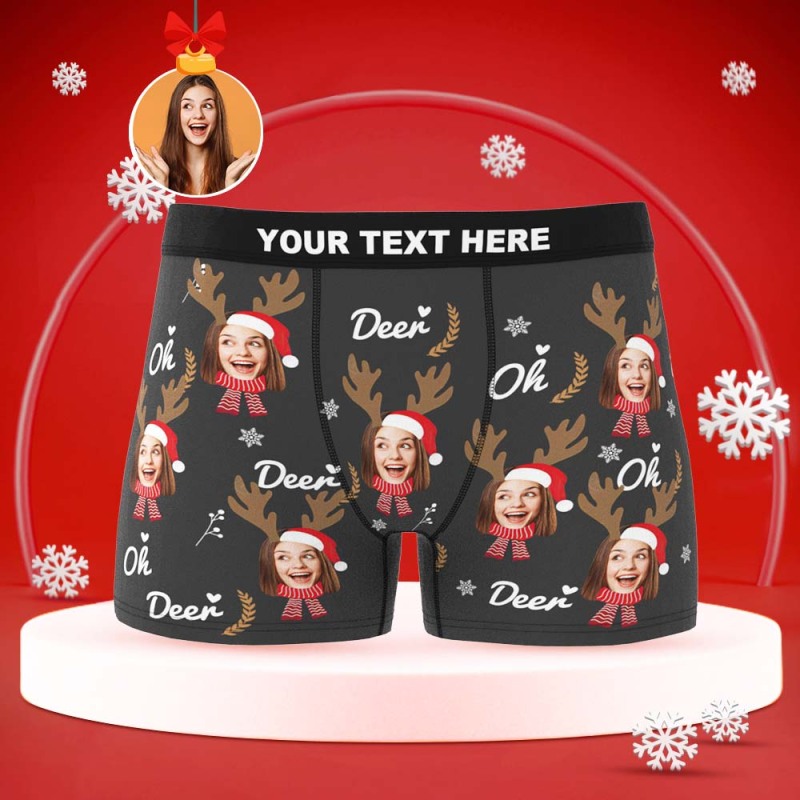 Custom Face Boxers Briefs Personalised Men's Shorts With Photo Christmas Reindeer