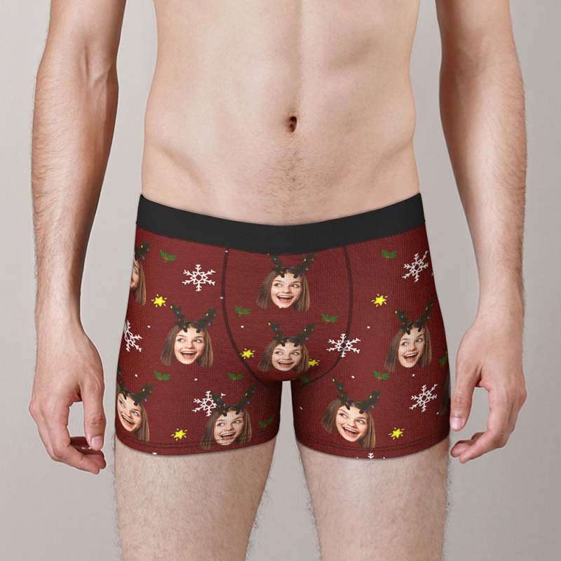 Custom Face Boxers Briefs Personalised Men's Shorts With Photo Snowflake And Antler Christmas Gifts