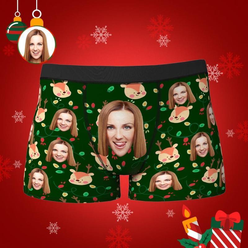 Custom Face Boxers Shorts Christmas Elk Personalised Photo Underwear Christmas Gift for Men