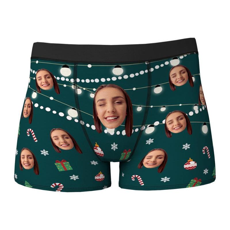 Custom Face Boxers Shorts Christmas Lights Personalised Photo Underwear Christmas Gift for Men
