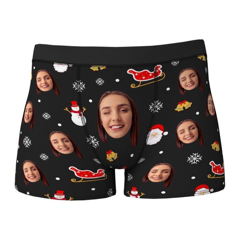 Custom Face Boxers Shorts Santa Claus and Sleigh Personalised Photo Underwear Christmas Gift for Men