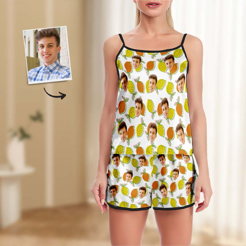 Custom Face Camisole Sleepwear Colorful Lemon Personalized Lingerie Set Summer Pajamas