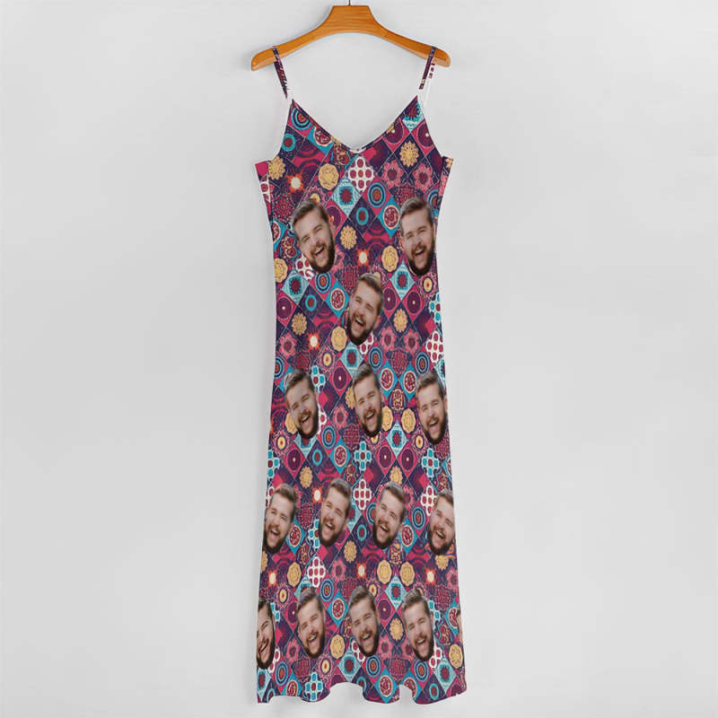 Custom Face Dress Vintage Boho Flower Pattern Personalized Casual Loose Party Long Dress
