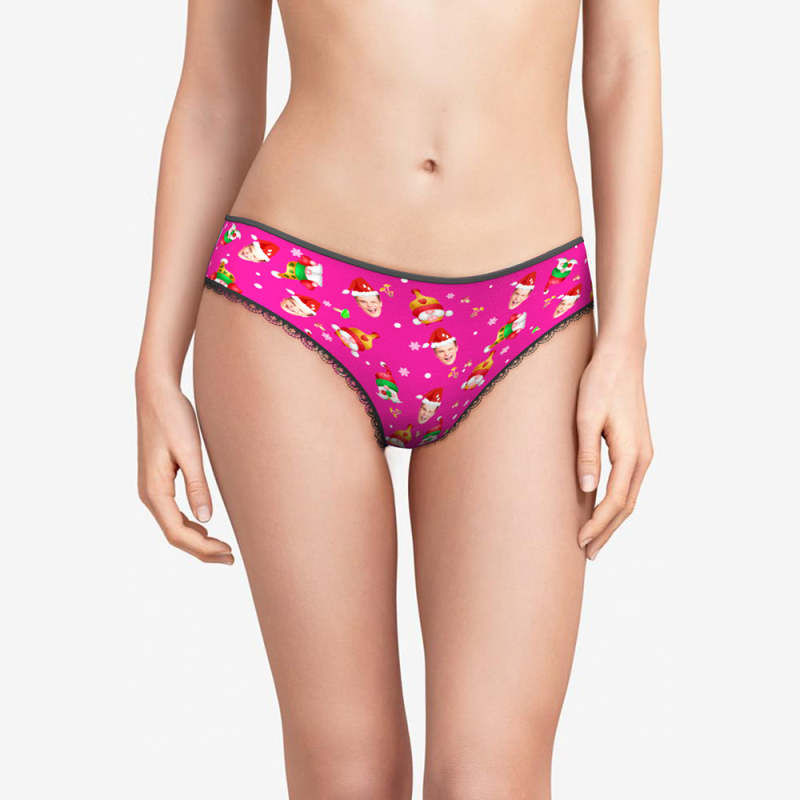 Custom Face Happy Gnomes Pink Christmas Women's Panties Personalised Pink Christmas Gift