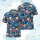 Custom Face Hawaiian Shirt Number and Face Hawaiian Shirt Dark Blue Sleeves and Pink Flowers