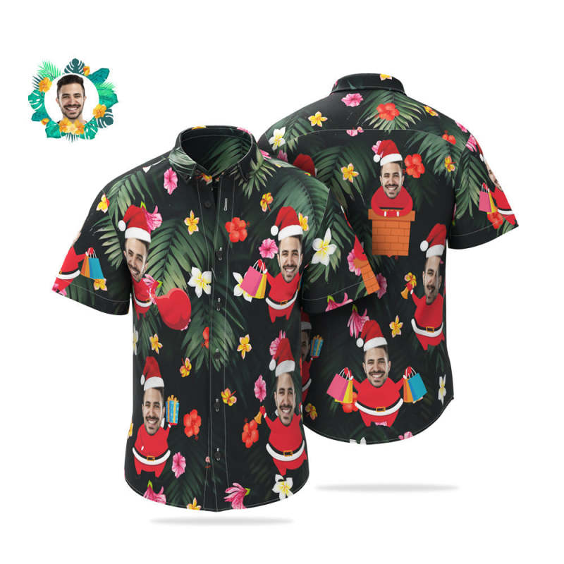 Custom Face Hawaiian Shirts Personalised Photo Santa Claus Christmas Shirt For Men
