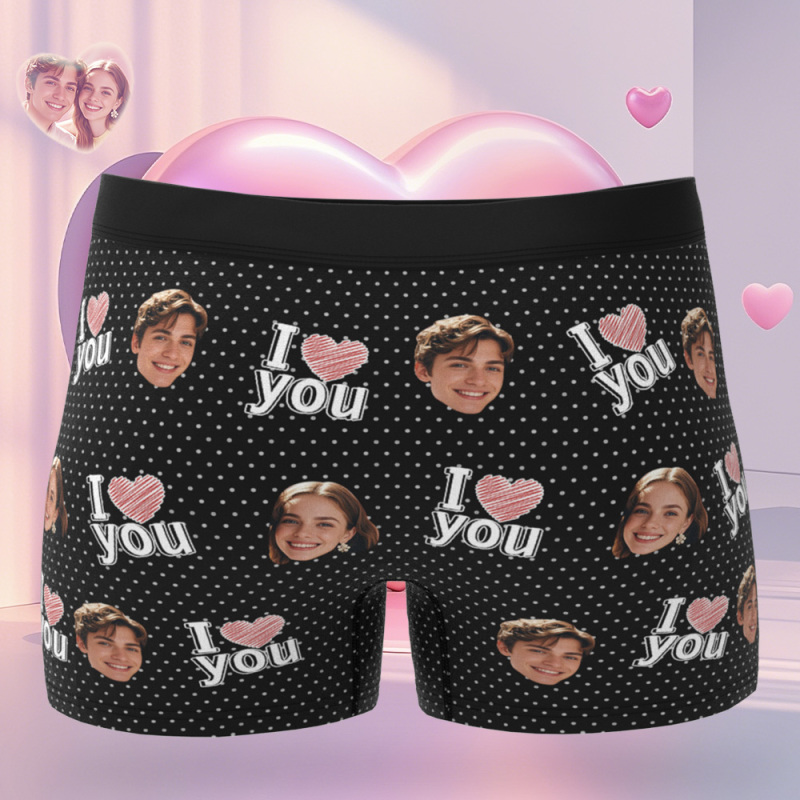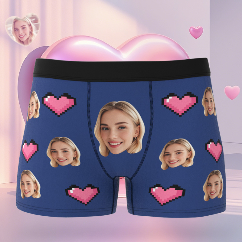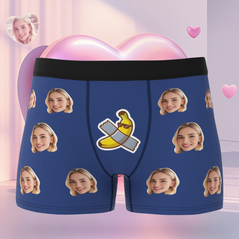 Custom Face Men's Boxer Let Me See Style Blue Underwear Gifts Birthday Gifts For Him