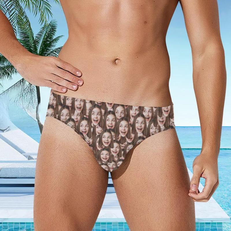 Custom Face Men's Swimming Trunks Personalised Face Mash Triangle Swim Briefs