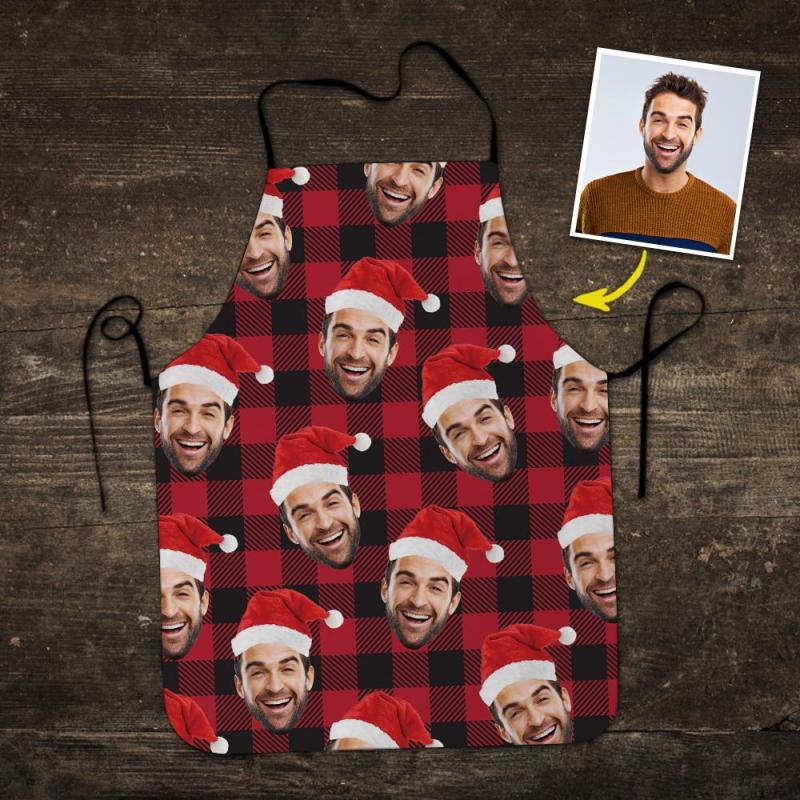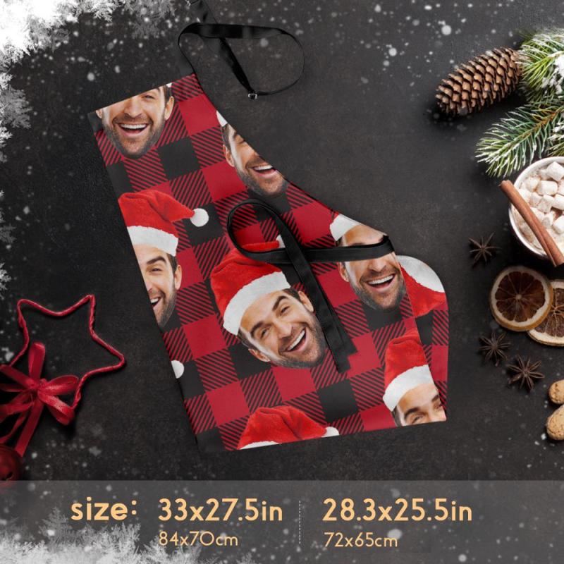 Custom Face Printed Plaid Apron Christmas Hat