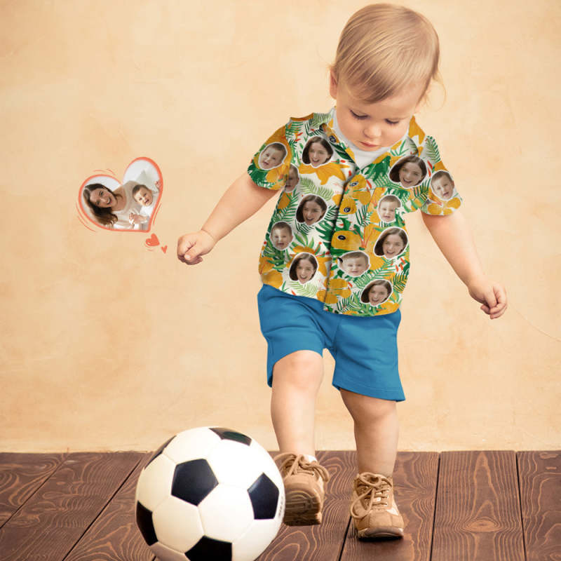 Custom Face Shirt Women's and Kids Hawaiian Shirts Short Sleeve Shirt Mother's Day Gift Yellow Flowers