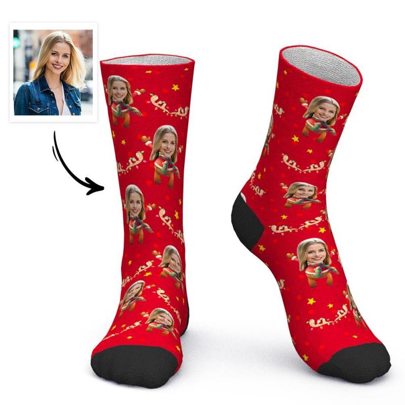 Custom Face Socks Personalized Photo Socks Christmas Gift - Christmas Elk