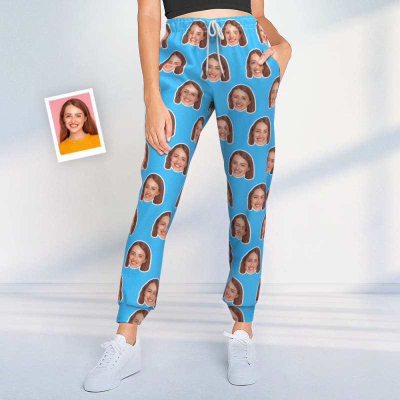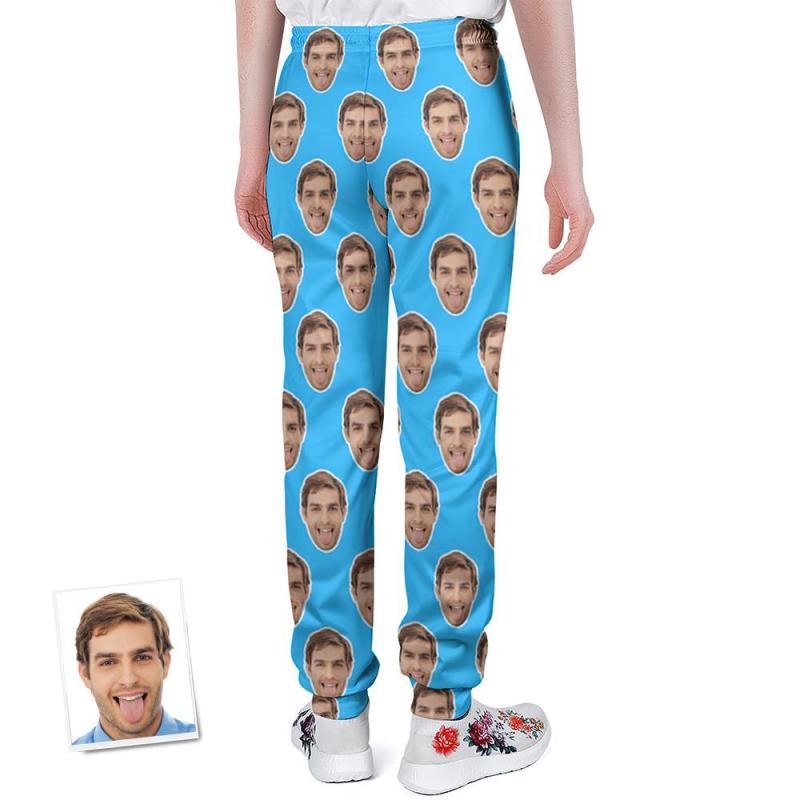 Custom Face Sweatpants Personalized Blue Unisex Joggers - Gift for Lover