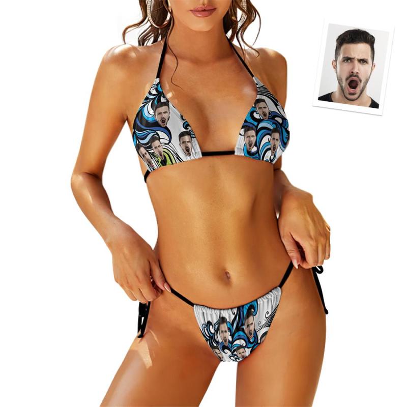 Custom Face Swimming Suit Sexy Strappy Bikini Waves