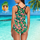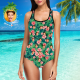 Custom Face Swimwear Women's Photo Slip One Piece Swimsuit Gift For Her - Leaves & Flowers