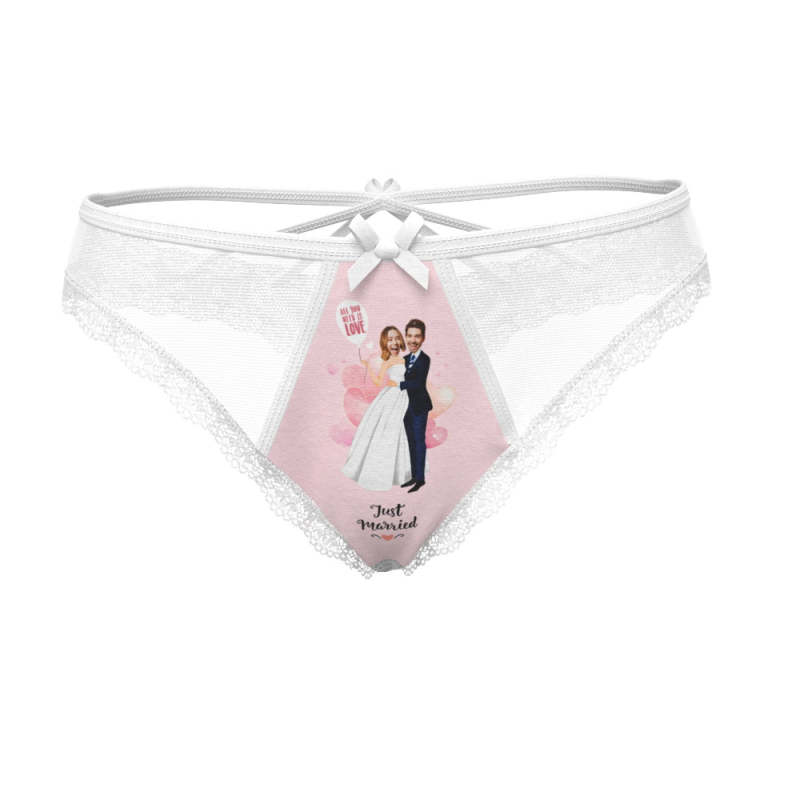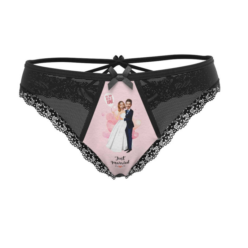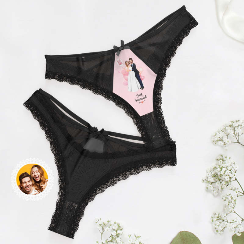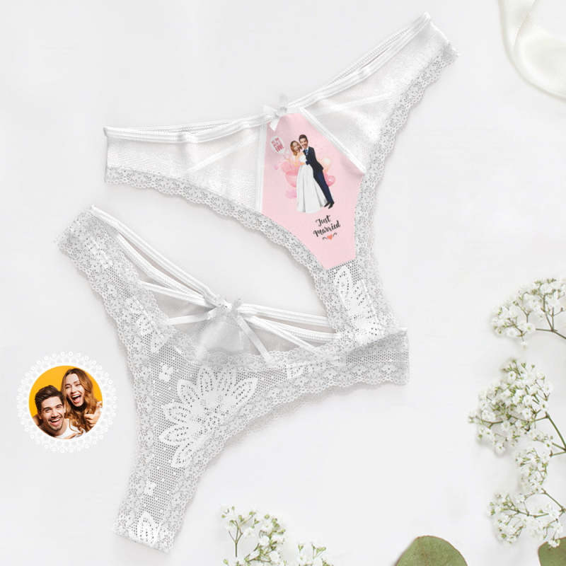Custom Face Underwear Just Married Lace Thong Gift for Wedding Couple