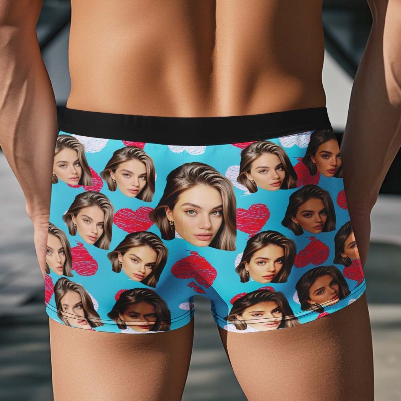 Custom Face Underwear Men's Boxer Briefs Personalized Photo Boxers Breathable Ice Silk Red and Pink Heart