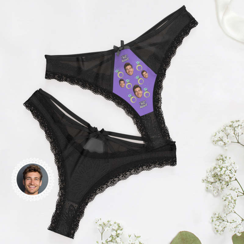 Custom Face Underwear Personalized Just Married Lace Thong Gift for Her