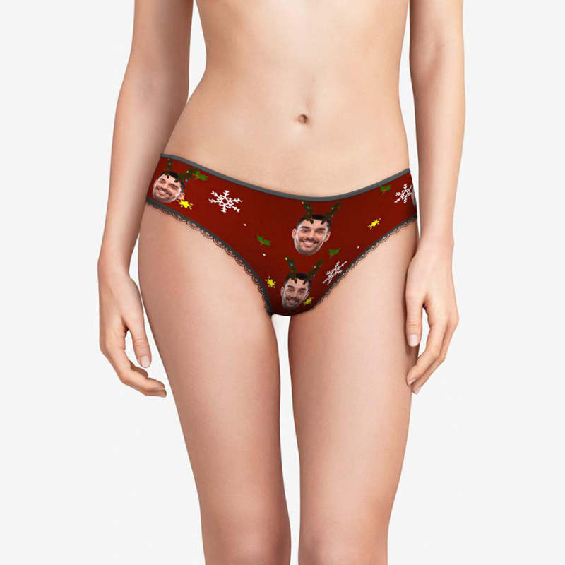 Custom Face Underwear Personalised Women Panties With Photo Snowflake And Antler Christmas Gifts