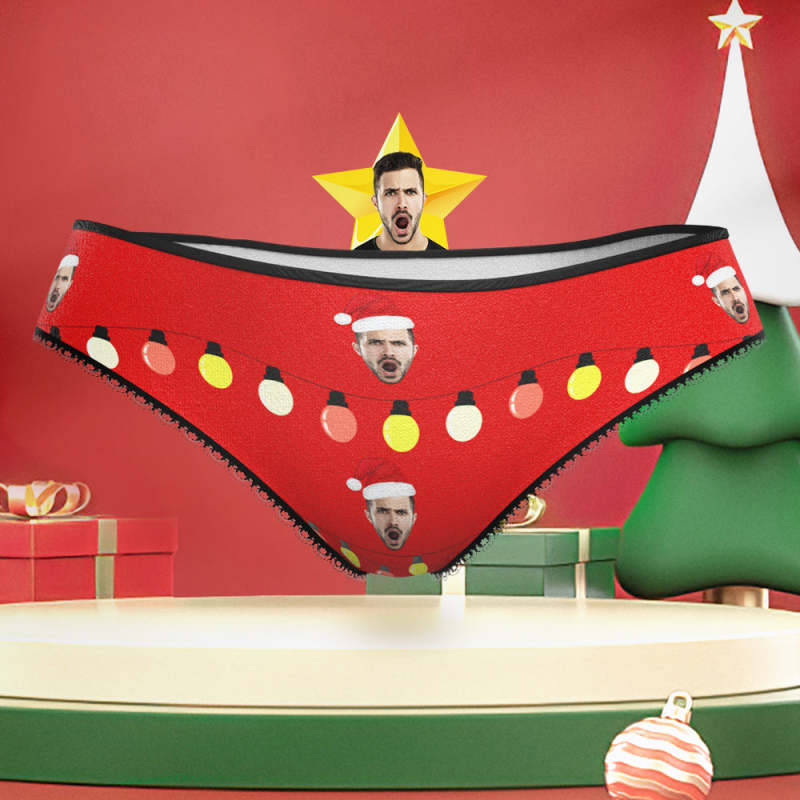 Custom Face with Santa Hat Christmas Lights Underwear Funny Christmas Panties for Her