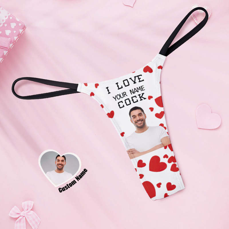 Custom Face Women's Tanga Thong Valentine's Day Gift I Love Your Name Cock