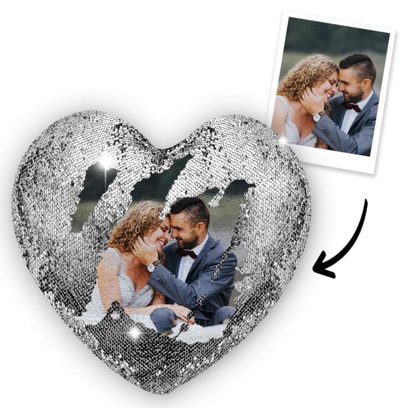 Custom Heart Love Photo Magic Sequins Pillow Multicolor Shiny