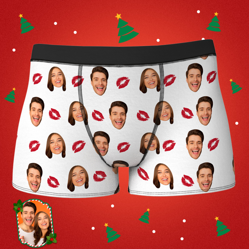 Couple Men's Custom Face Boxer Shorts - Kiss