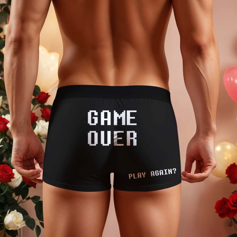 Custom Men's Boxer Shorts Game Over Personalized Name Valentine's Day Gift