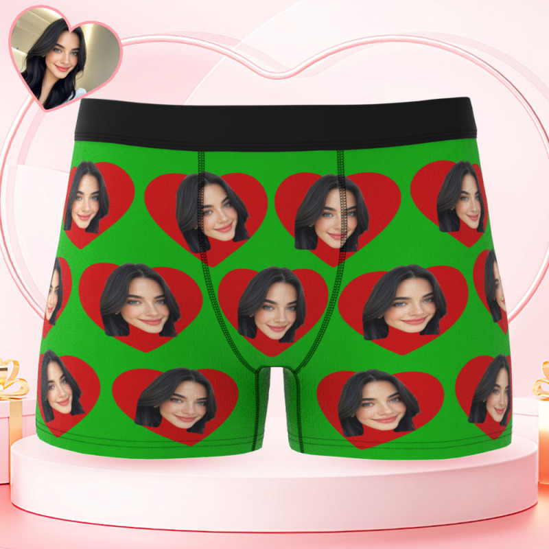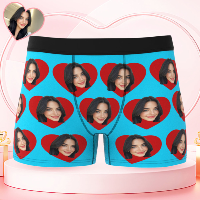 Custom Men's Face Boxers Personalized Photo Love Heart Multicolor Boxer Briefs for Boyfriend Valentine's Day Gift