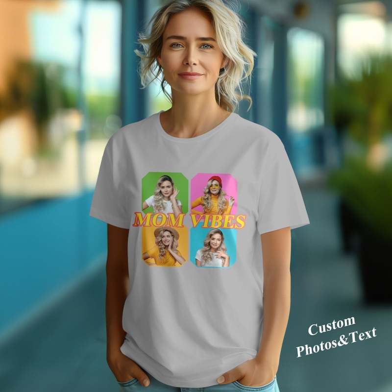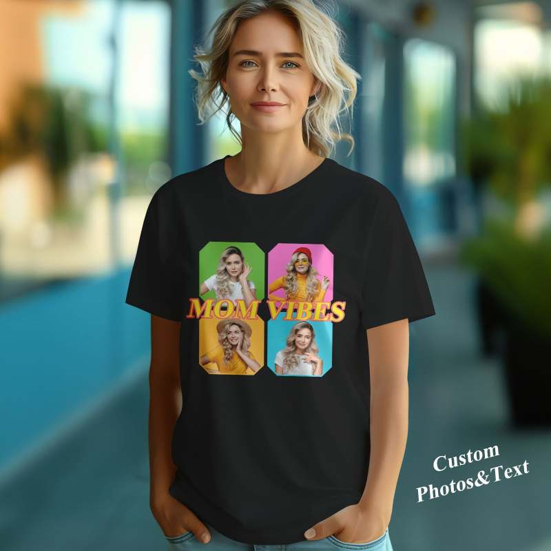 Custom Mom Vibes Vintage Photo Tee Mother's Day Gift