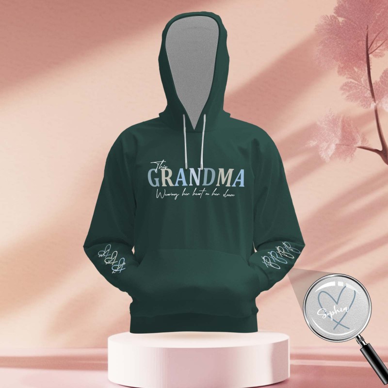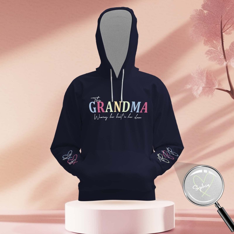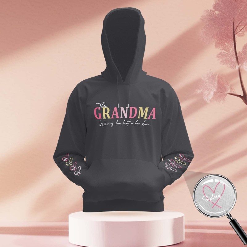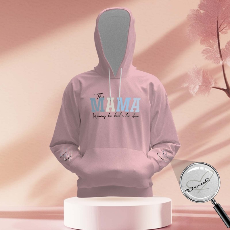 Custom Name Hoodie Personalized Hoodies Wear Heart On Sleeve Hoodie Mother's Day Gift
